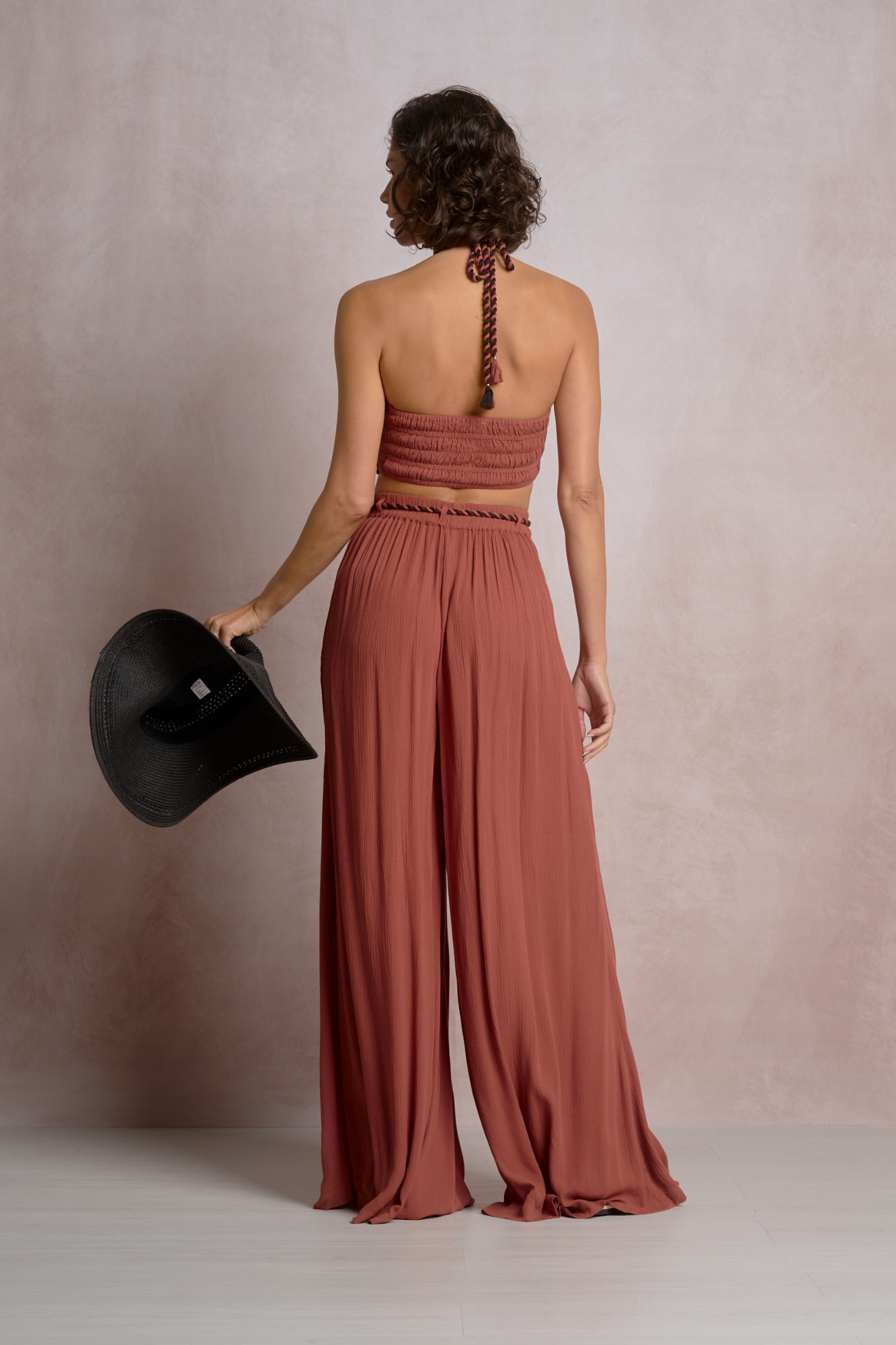 Rope Tie Wide Leg Pants - Dark Cayenne / S is backordered and will ship as soon as it is back in stock.