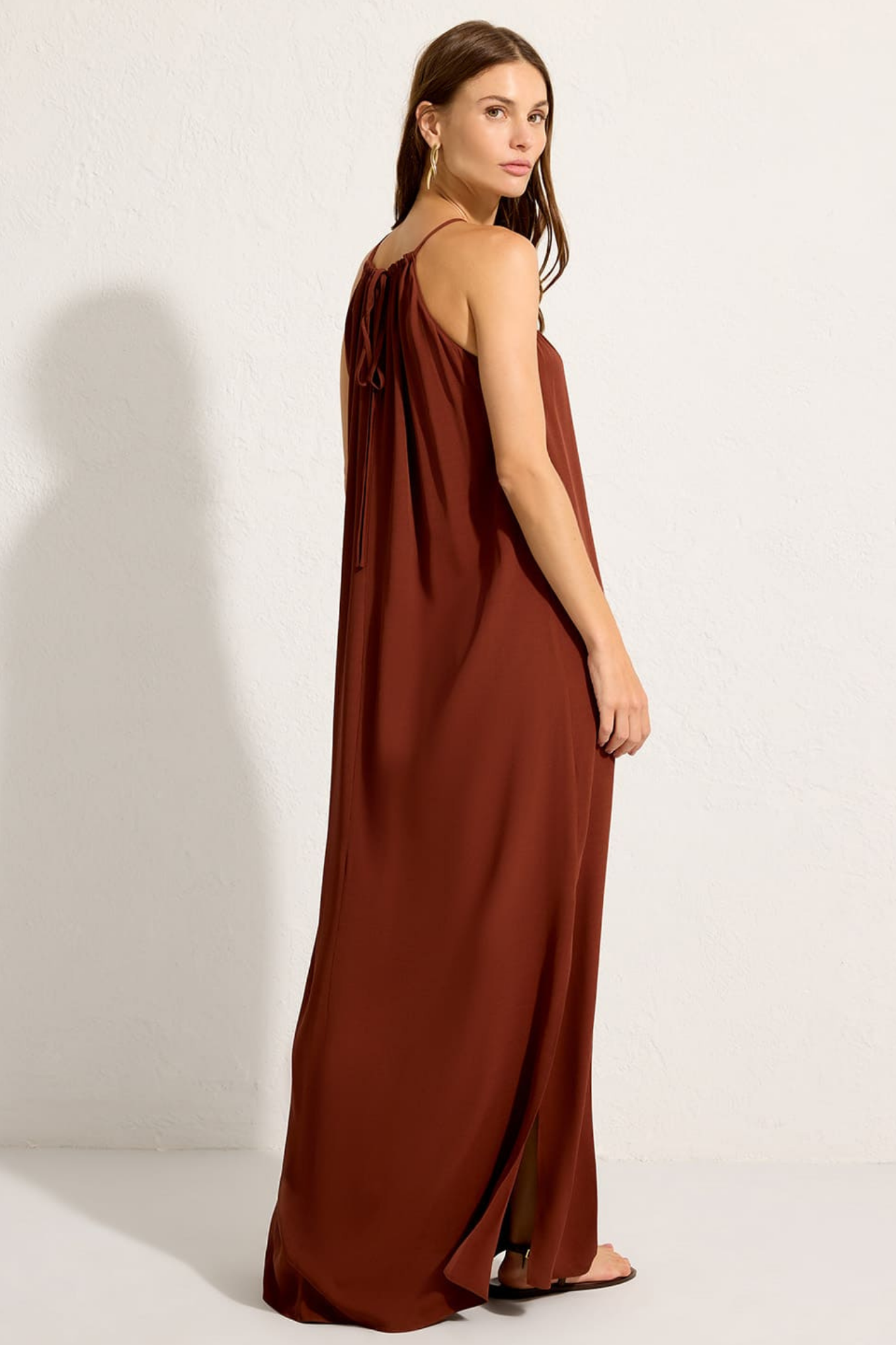Square Detail Long Dress - Capuccino Brown / S is backordered and will ship as soon as it is back in stock.