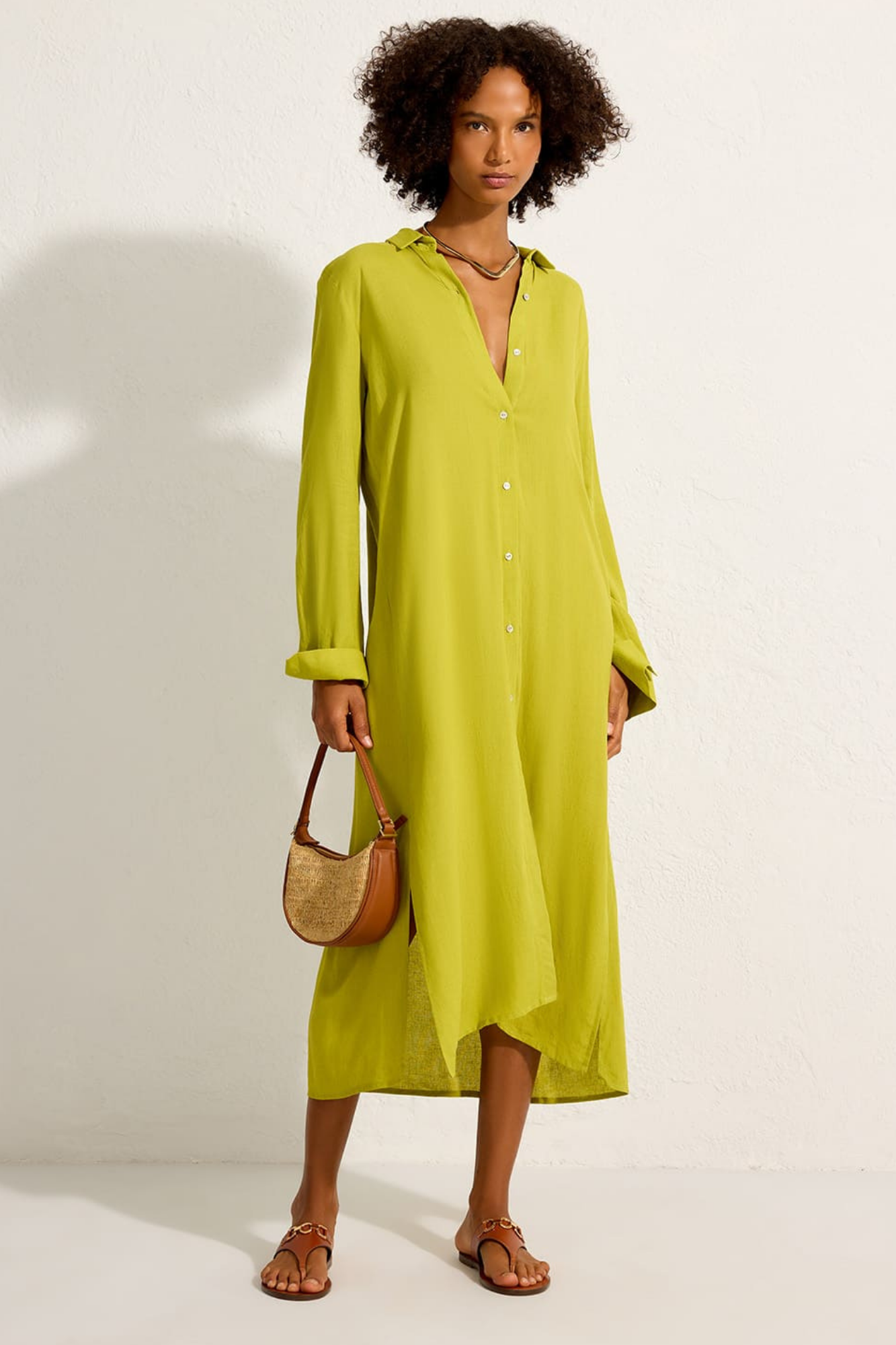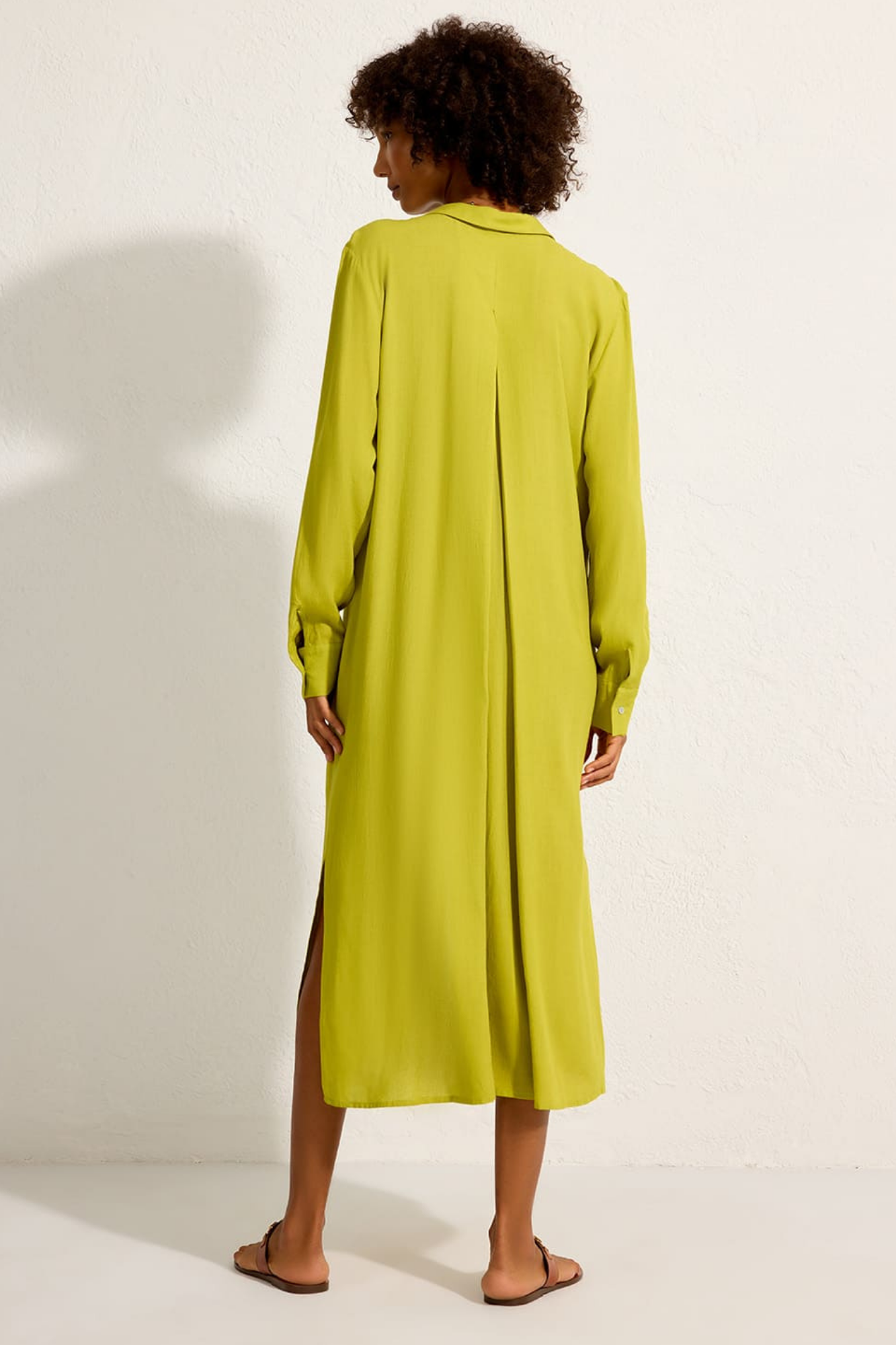 Back Pleat Long Chemisier - Orchard Green / S is backordered and will ship as soon as it is back in stock.